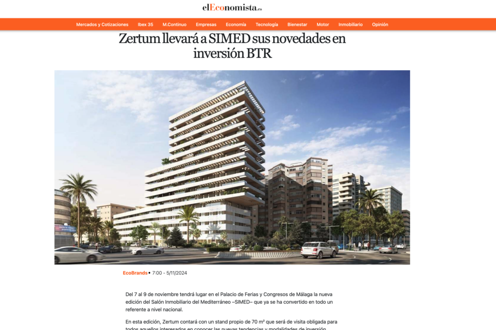 Zertum llevará a SIMED sus novedades en inversión BTR