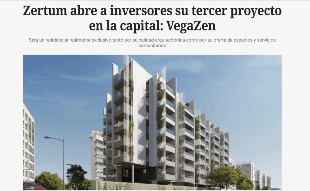 Zertum abre a inversores su tercer proyecto en la capital: VegaZen
